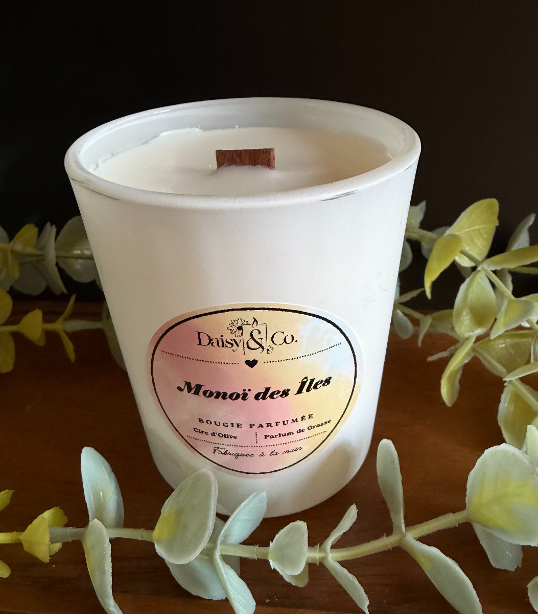 Évadez-vous sous le soleil du Pacifique avec notre bougie Monoï des Îles. Un voyage parfumé qui vous comblera.