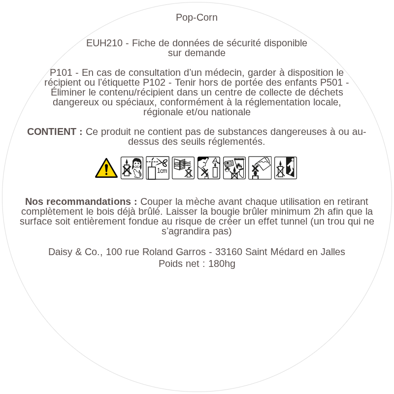 - Bougie de 180g avec sa mèche en bois pour environ 40h de brûlage.