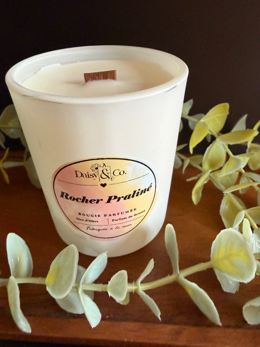 Pour allumer votre bougie en mèche de bois, la meilleure technique est de tenir le contenant un peu en angle, et de laisser la flamme embraser toute la longueur de la mèche, pour éviter qu’un seul côté soit allumé et que la cire ne fonde pas uniformément.