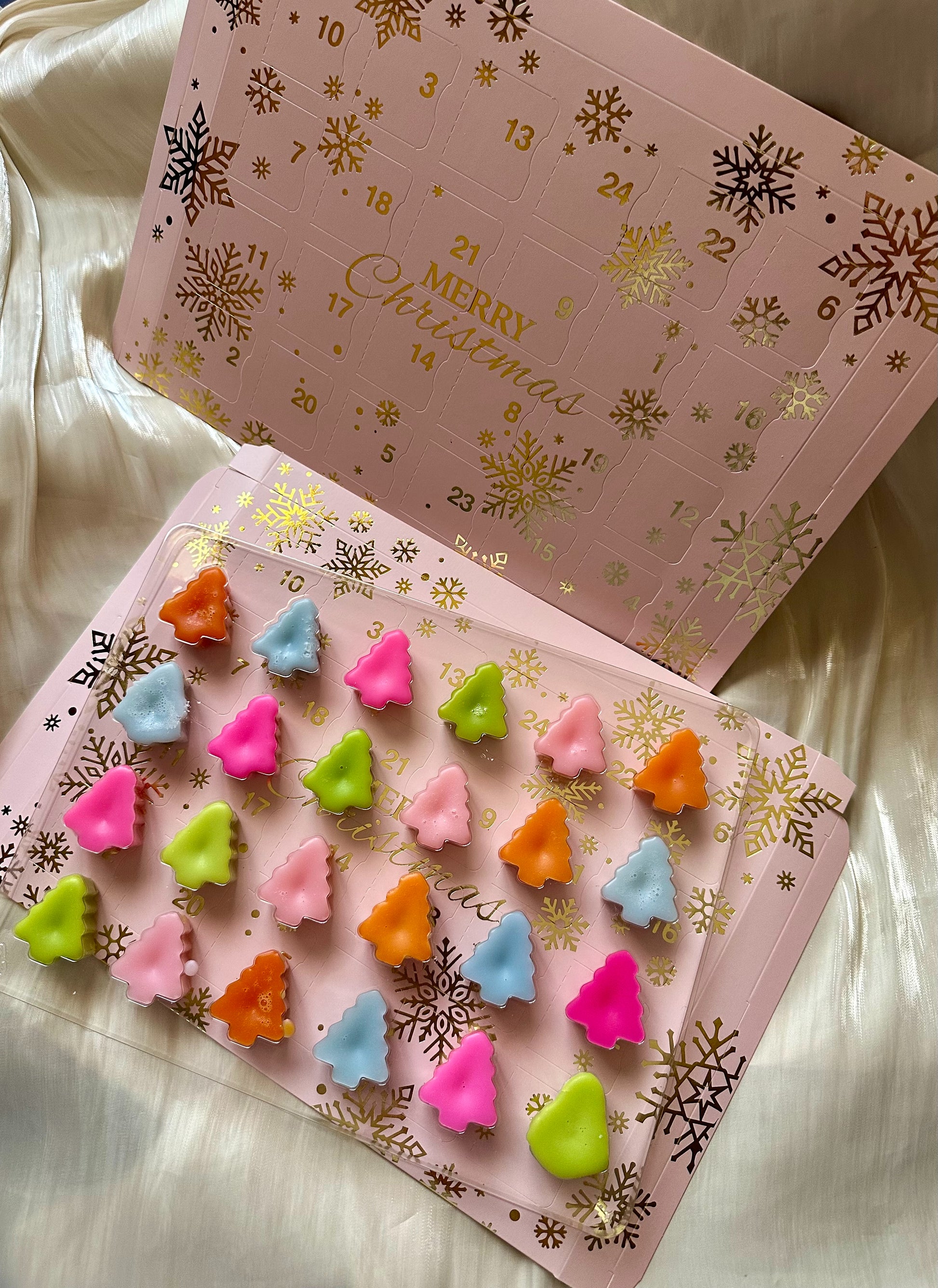 Ce calendrier contient 24 petits fondants de 10g à découvrir tout au long du mois de décembre, 24 parfums complètement inédit sur le site que vous ne pourrez sentir qu'avec ce calendrier.