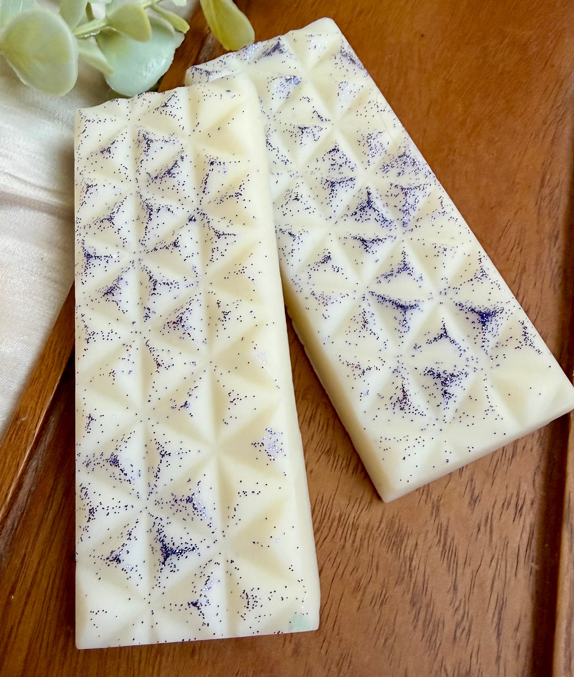 Chaque Tablette a été méticuleusement coulée à la main et pèse environ 45g. Fabriquée avec une cire d'Olive et des fragrance de Grasse.