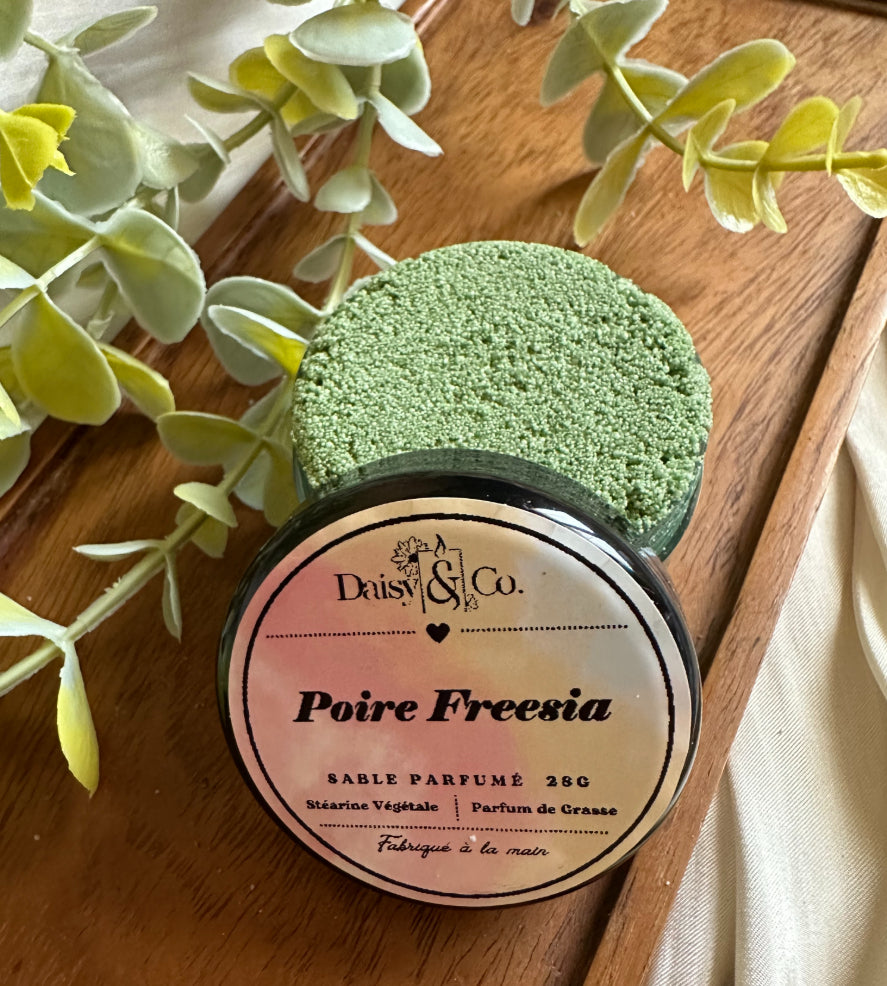 Plongez dans un monde à la fois floral et fruité avec le Sable Parfumé Poire Freesia. Une fusion délicieuse de la poire et du freesia.