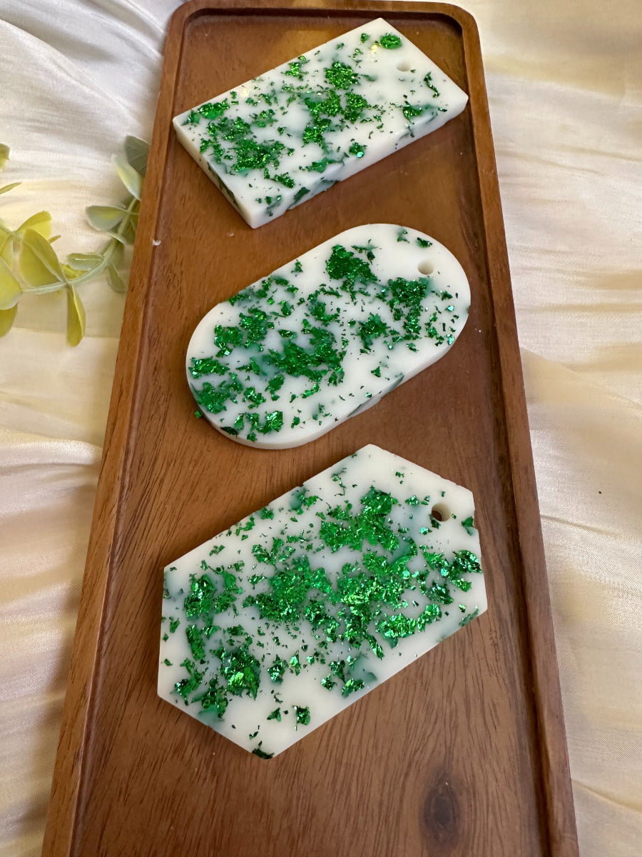 Fabriquée avec de la cire d'Olive, fragrance de Grasse et feuilles d'or de couleur verte.