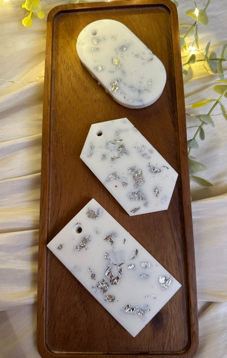 Fabriquée avec de la cire d'Olive, fragrance de Grasse et feuilles d'or de couleur argentées.