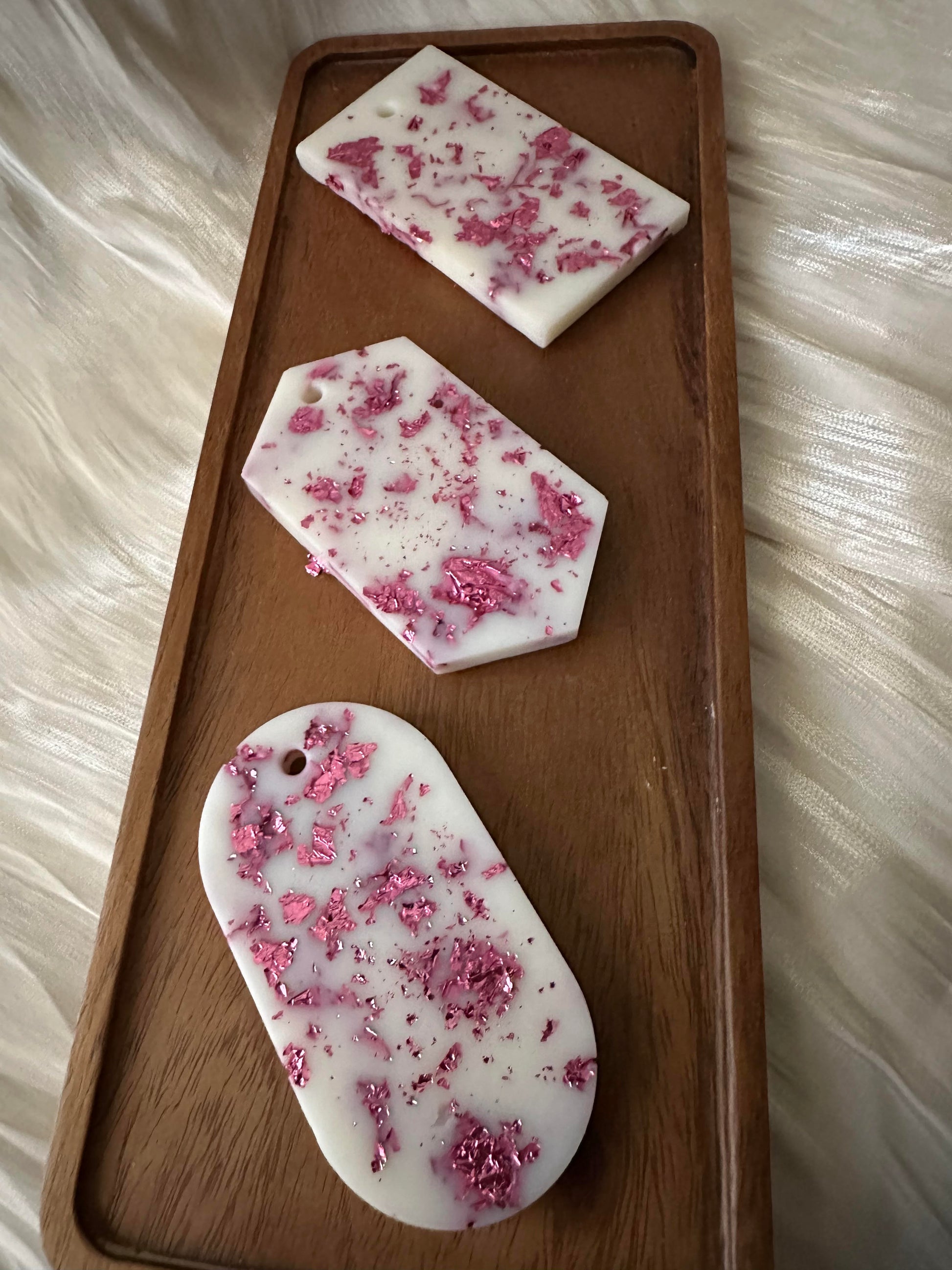 Fabriquée avec de la cire d'Olive, fragrance de Grasse et feuilles d'or de couleur rose.