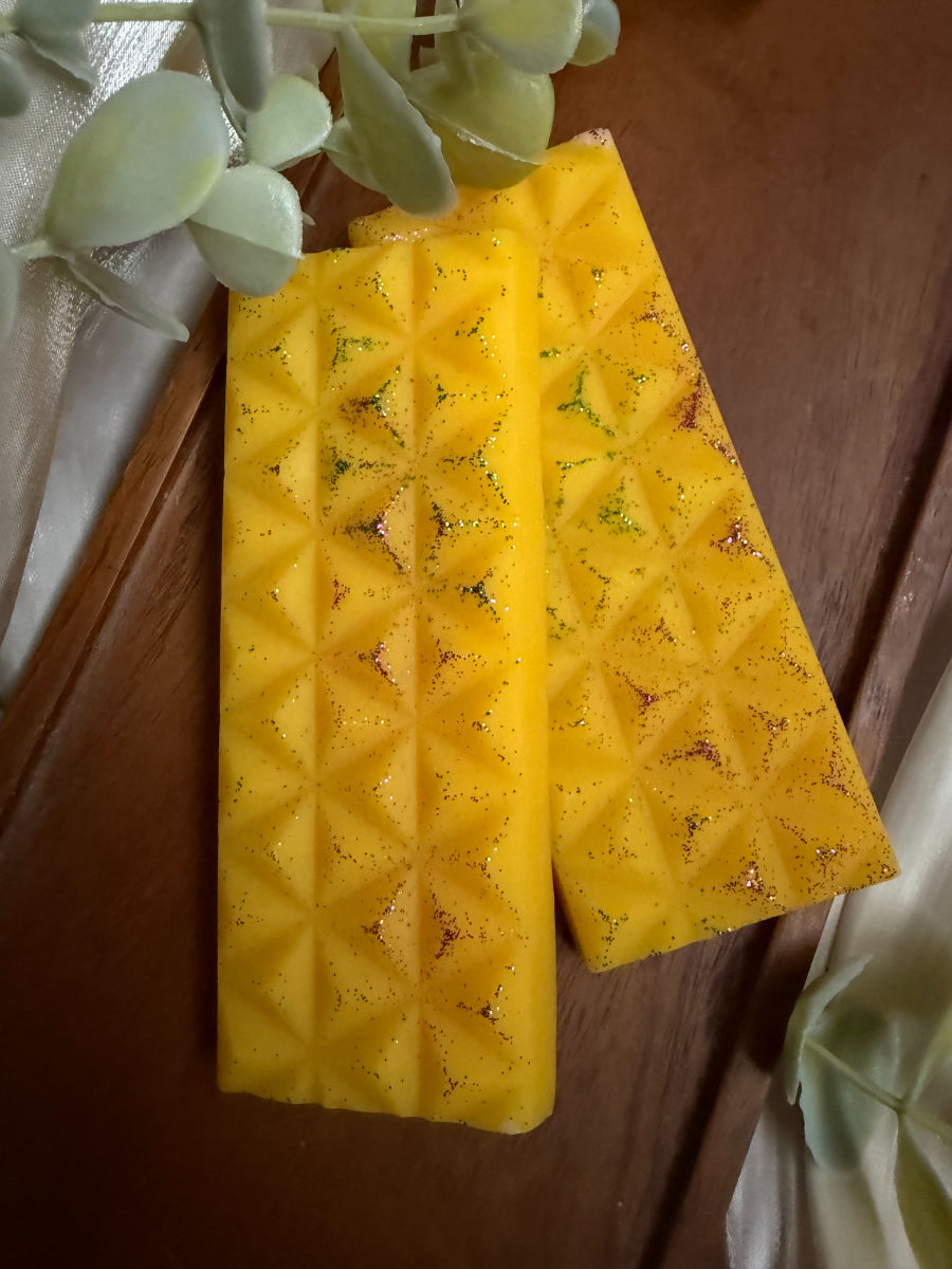 Chaque Tablette a été méticuleusement coulée à la main et pèse environ 45g. Fabriquée avec une cire d'Olive et des fragrance de Grasse.